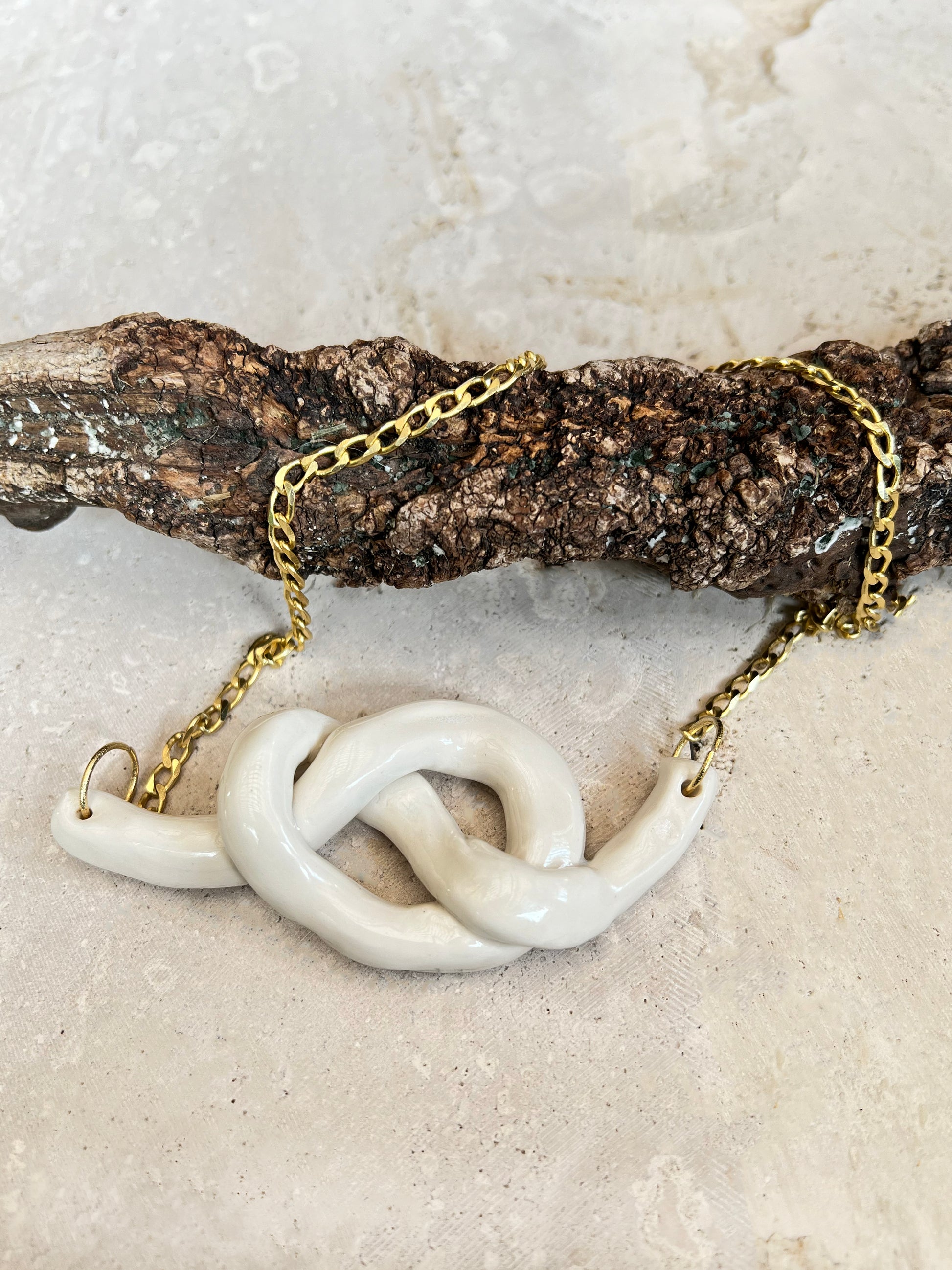 COLLAR DE PORCELANA HECHO A MANO CON CADENA BAÑADA EN ORO.