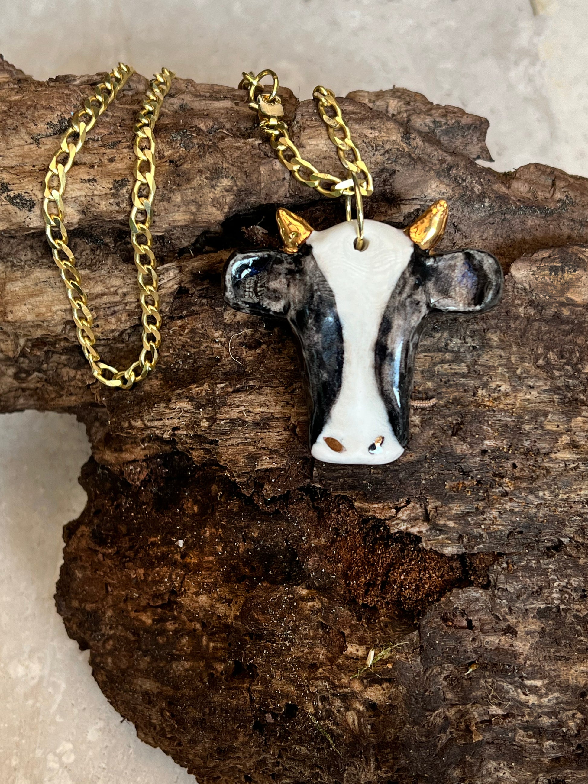 COLLAR DE PORCELANA ESMALTADO Y PINTADO CON ORO HECHO A MANO. DISEÑO EXCLUSIVO. CADENA ENCHAPADA EN ORO. TAMAÑO MEDIUM.