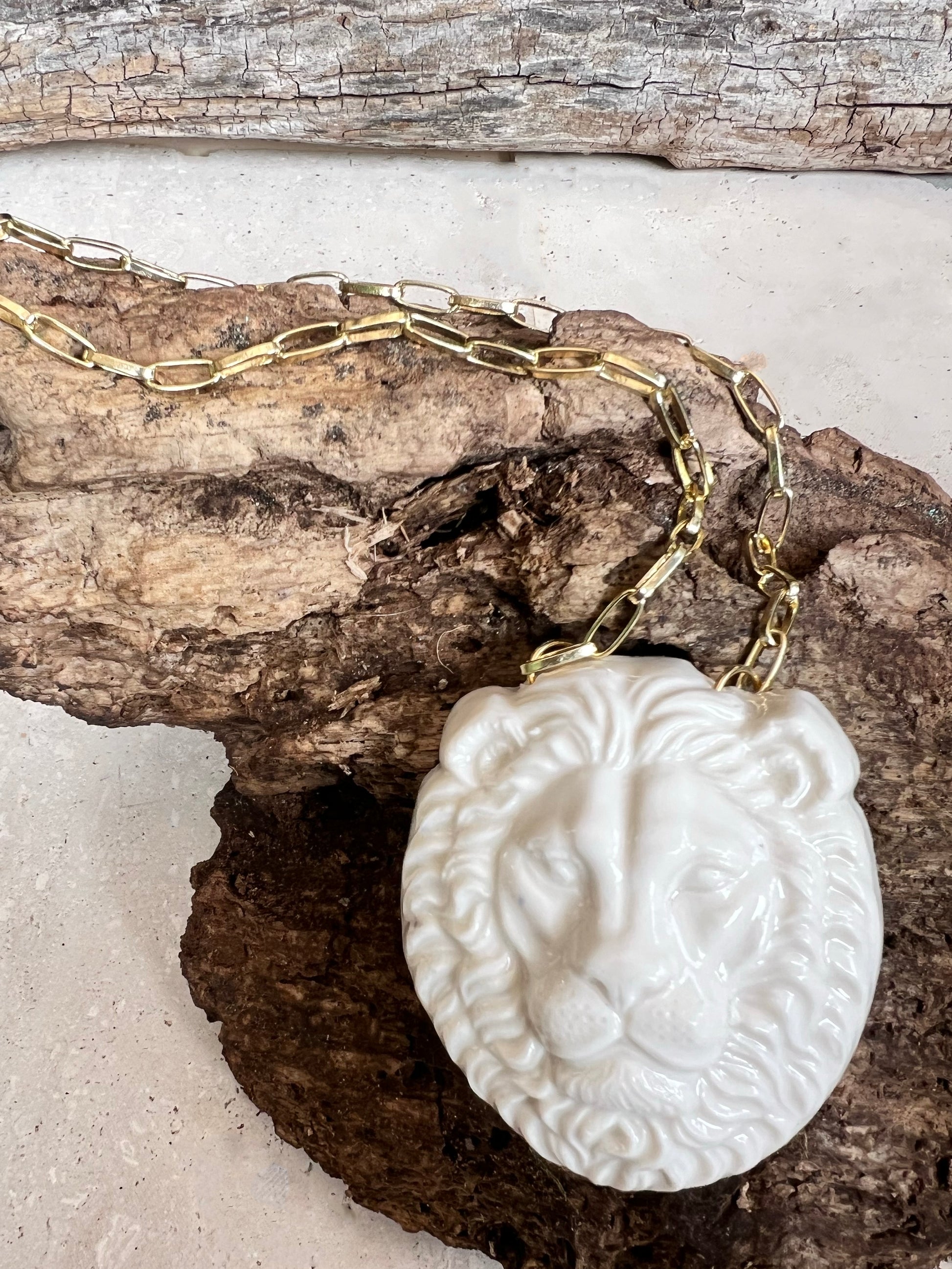 COLLAR DE PORCELANA HECHO A MANO. DISEÑO EXCLUSIVO. CADENA ENCHAPADA EN ORO.