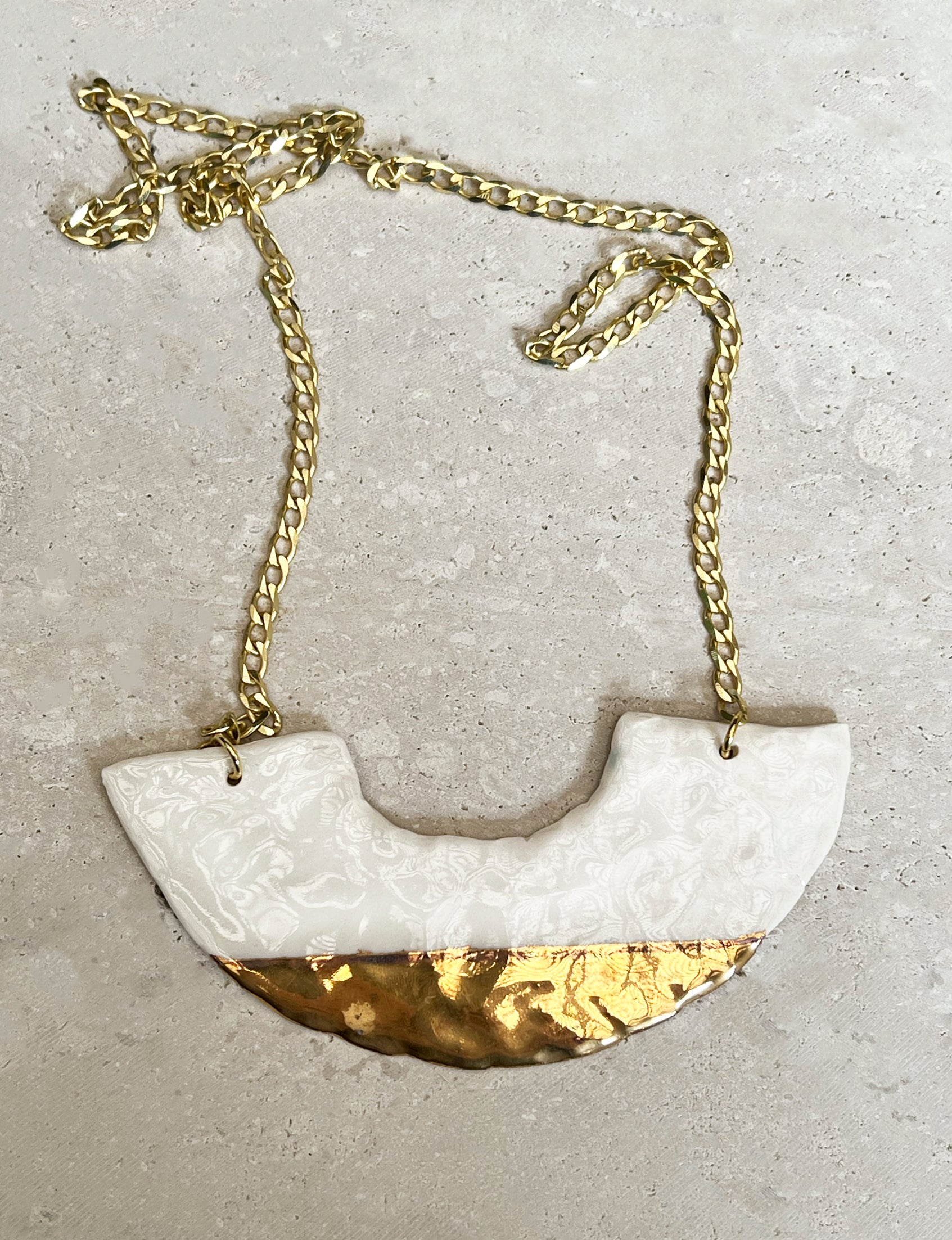 COLLAR DE PORCELANA PINTADO CON ORO 18 K. HECHO A MANO. DISEÑO EXCLUSIVO. CADENA ENCHAPADA EN ORO.