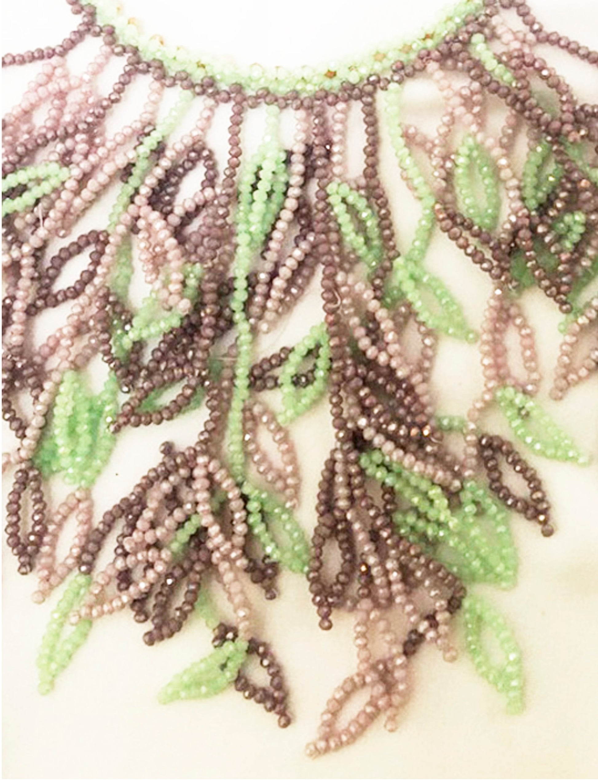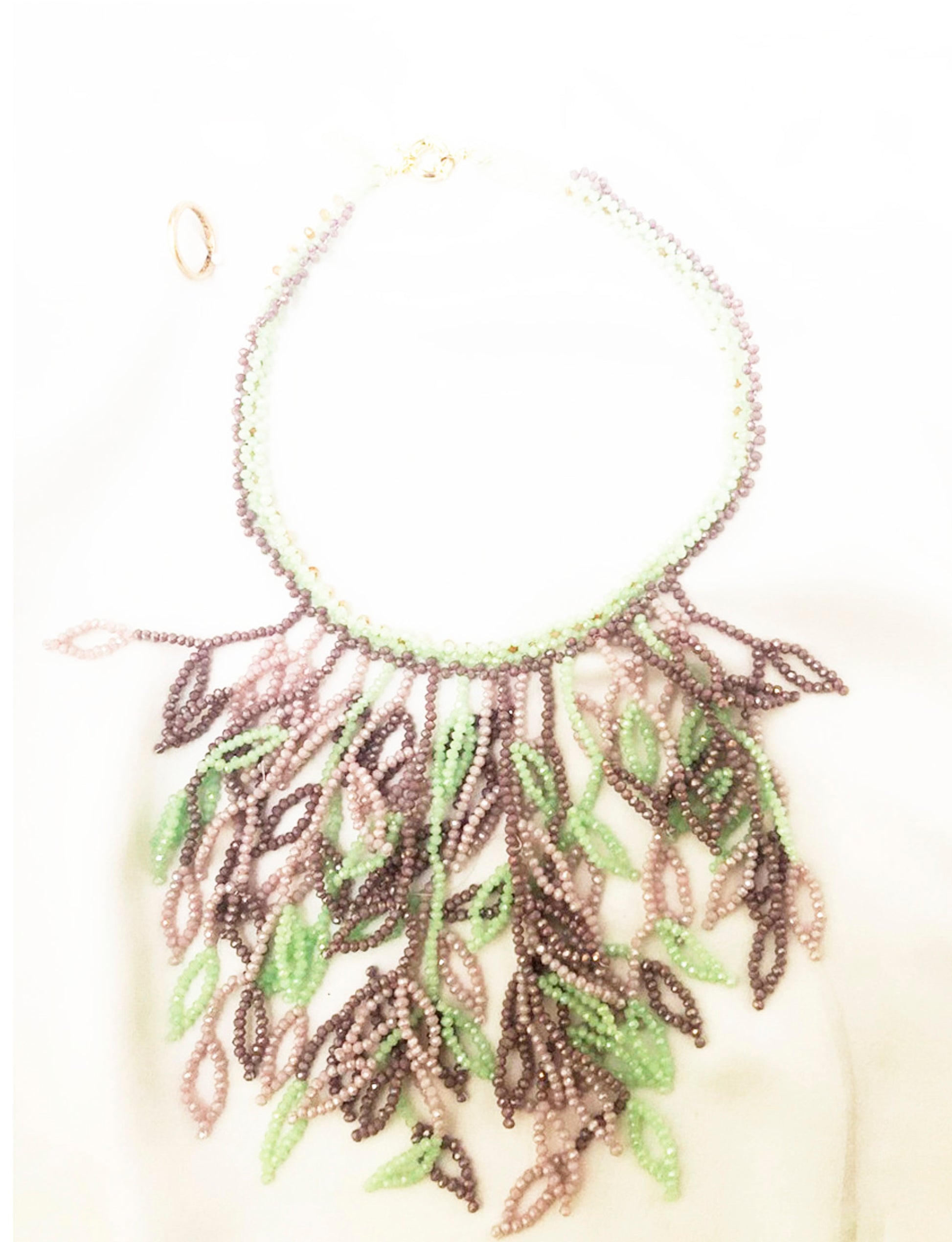 Collar grande tejido con cristales. Broche bañado en oro. Hecho a mano. Diseño exclusivo.